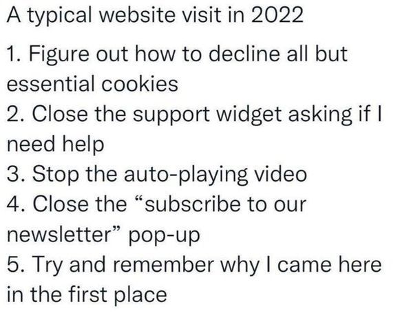 Ler um artigo exige sair dos anúncios, pausar vídeos, recusar cookies, recusar newsletters, recusar notificações, etc;