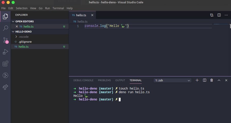 Salve o arquivo e execute-o: deno run hello.ts. É isso. Sério mesmo :)