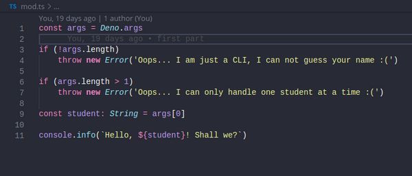 deno fmt <arquivo>para formatar seu arquivo com as indentações, espaçamentos e organização corretinhas :wink: