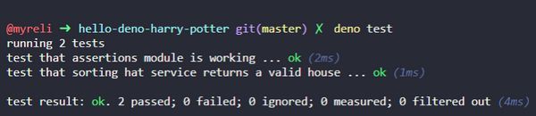Agora é só executar deno test e ta-dam:
